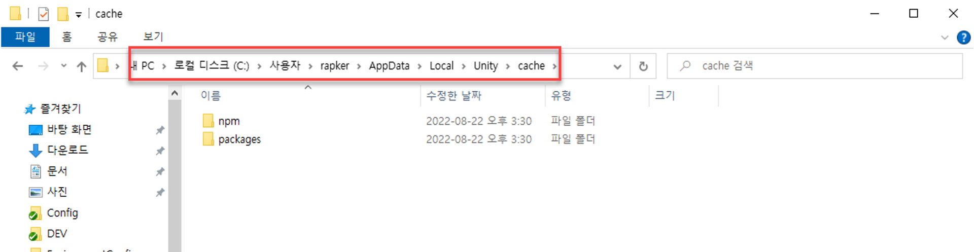 인터넷 트래픽 제한 없는 PC에서 안드로이드 빌드 성공 후 Unity cache폴더 내용을